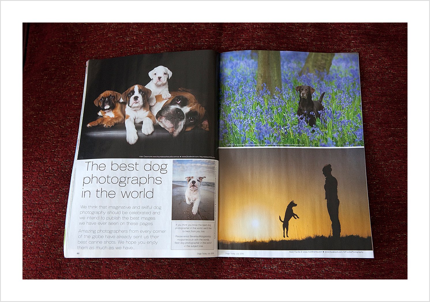Last week I got exciting news, one of my images was selected by one of the leading dog magazines, “Dogs Today” to be published in their “Best Dog Photographers in the World” section. I knew that they were going to be using an image but had no idea which of the images I had sent they had chosen. They kindly sent me a copy of the magazine. I had asked permission to use the photographs and the owner of the dog that got featured had come the day before the magazine arrived for her viewing.