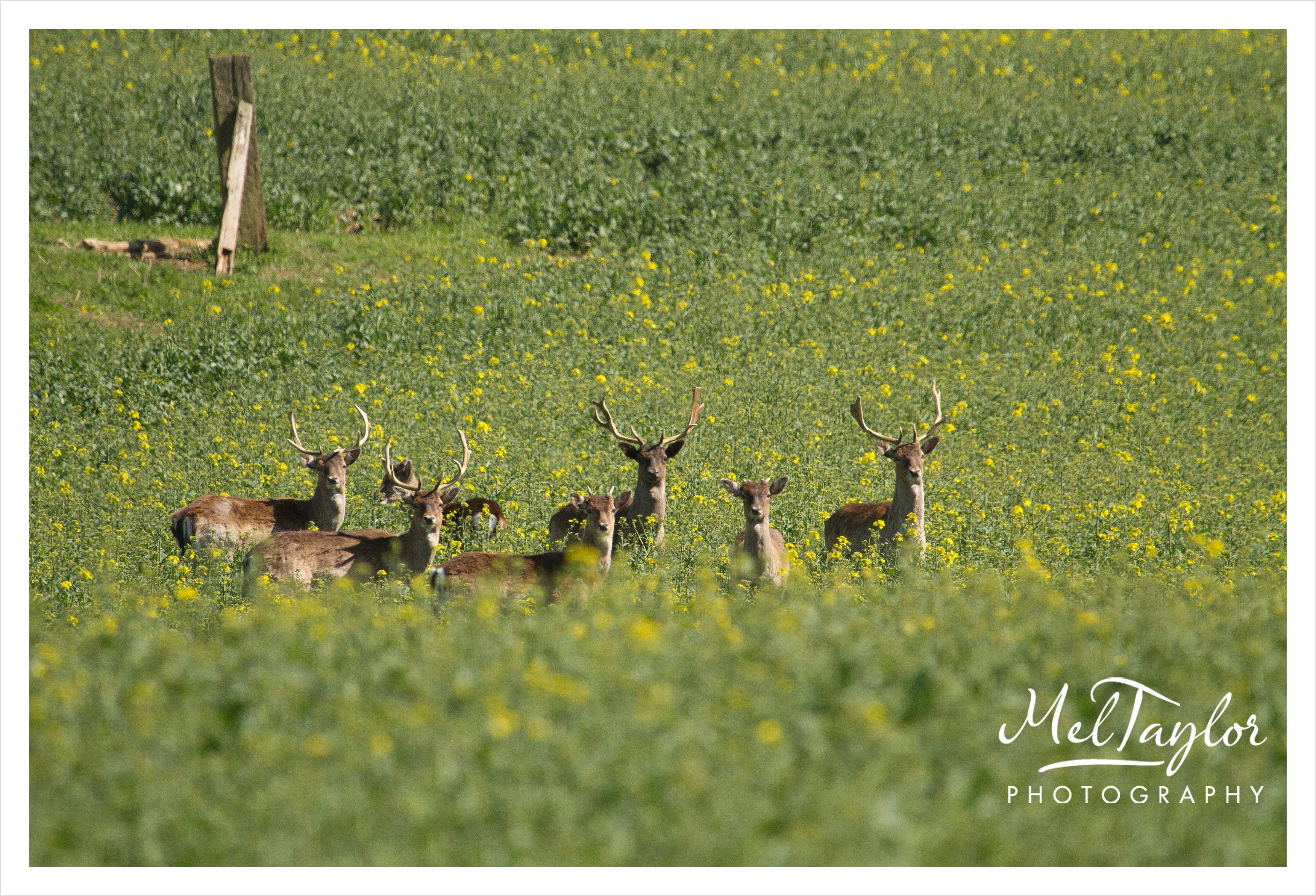 This herd was seen on a walk on the Ridgeway near Letcombe Regis. A lovely group of young stags! It was a shame the rape was not in full bloom!