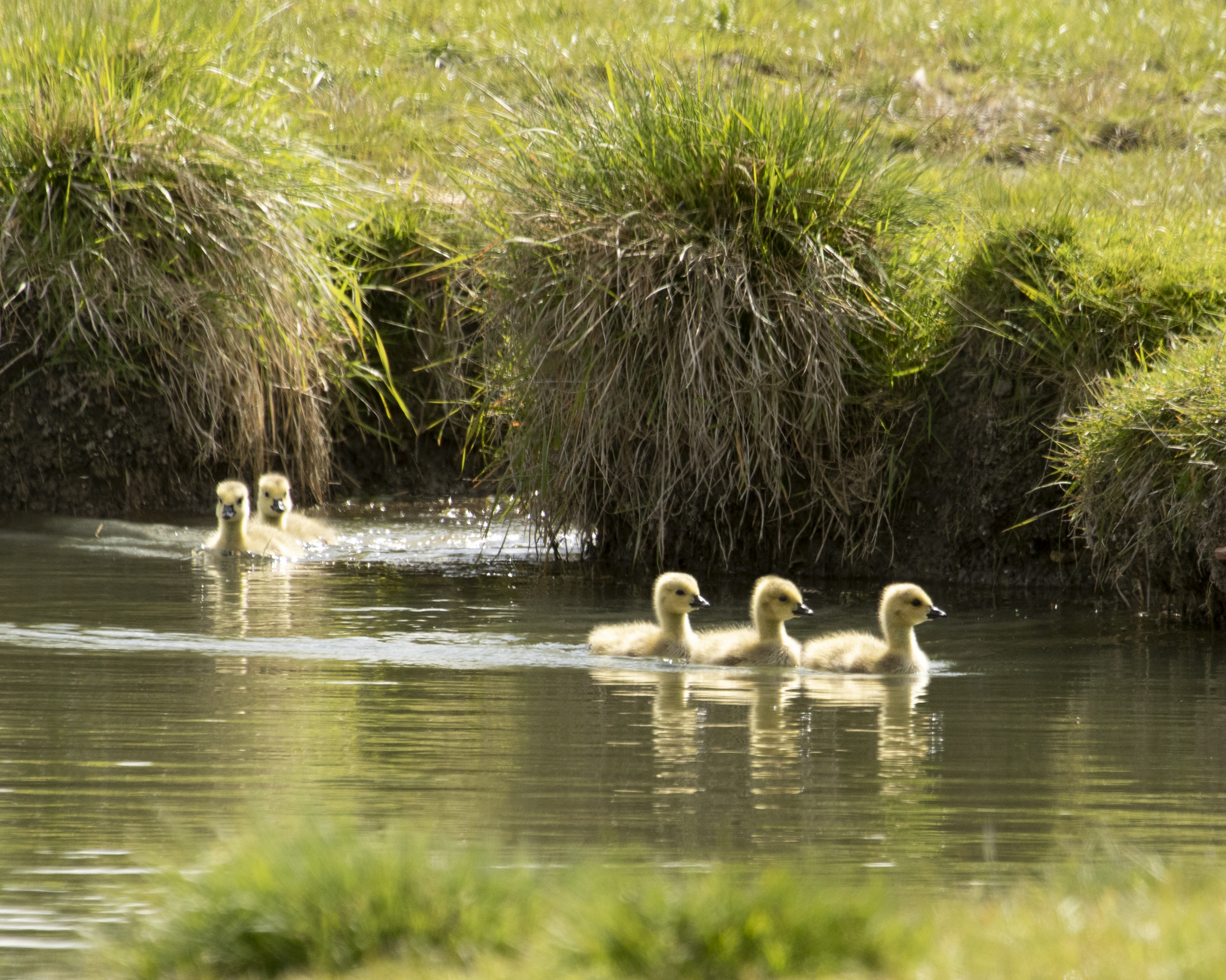 The Goslings are growing. If I miss a day of seeing them I can see that they have grown the next day. They don’t stay as fluffy yellow balls of cuteness for long.