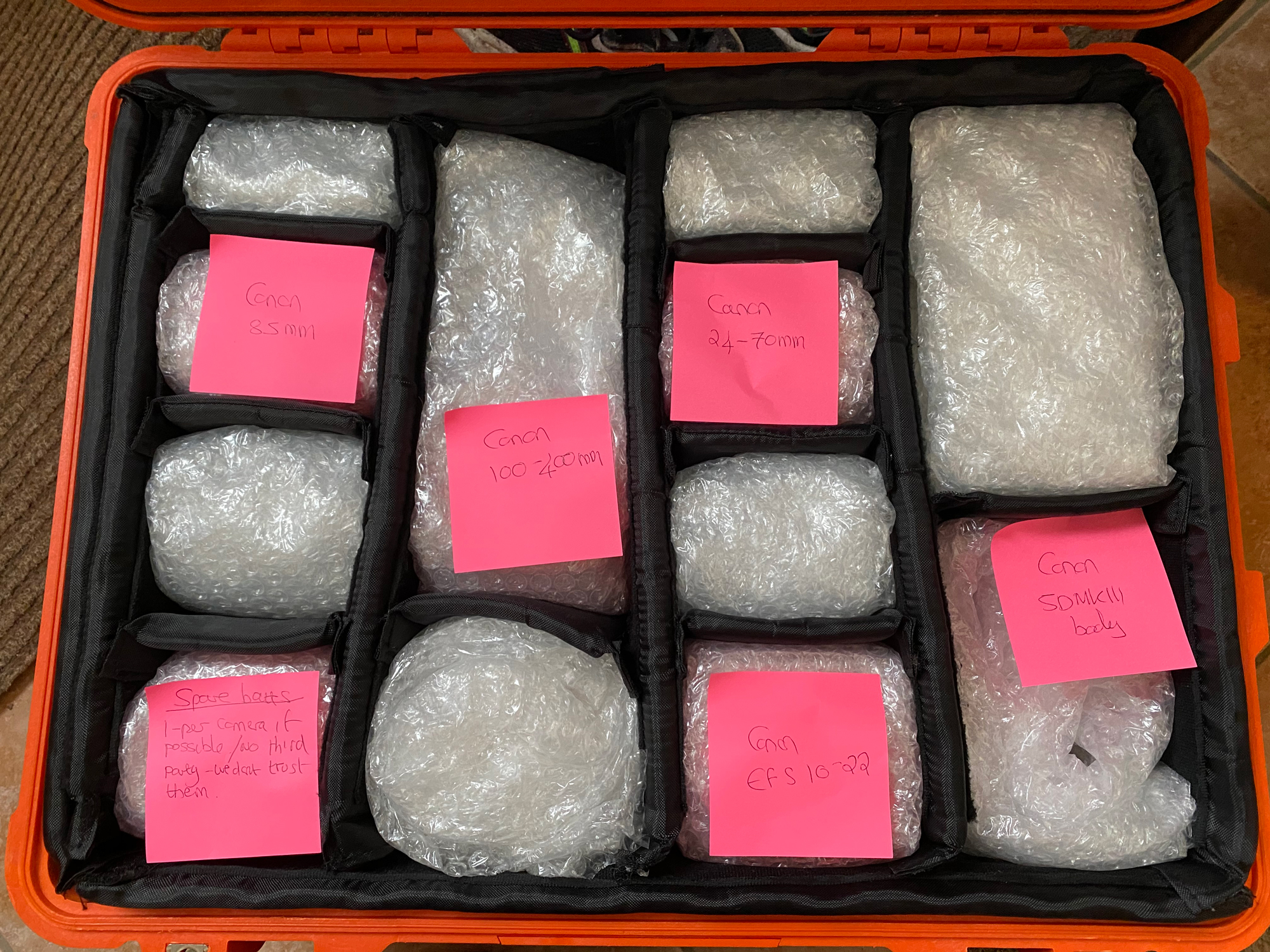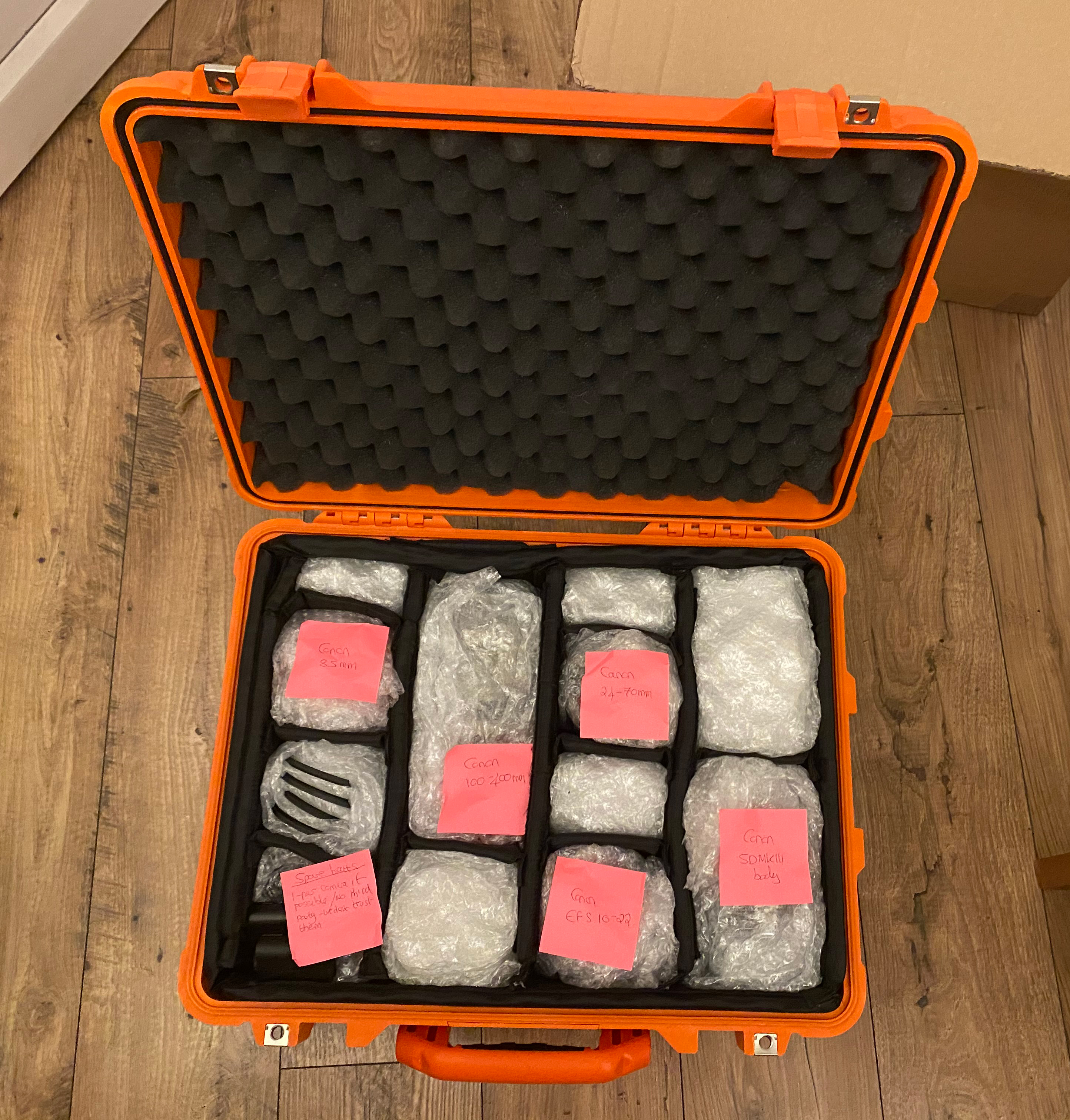 Everything is packaged really well and when you open up the Peli boxes it could not be easier. Everything is provided even where to put each of the products that you are returning so that the case is packaged evenly and everything is protected as well as it can be. All you need to do is wrap the camera’s, lenses and batteries up in the bubble wrap, close up the Peli boxes. Put back into the cardboard box and seal up ready to return. You are even provided with the tape to seal up the boxes.